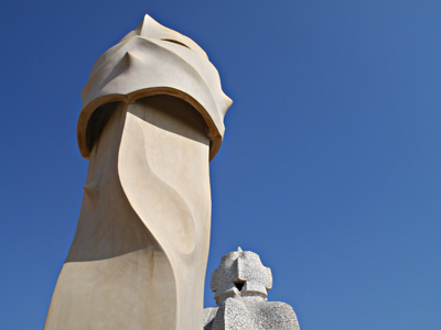 I took this photo on the rooftop of Casa Milà in Barcelona, Spain. Casa Milà is a work of Antoni Gaudí. Since works of Antoni Gaudí is listed on UNESCO world heritage site, lots and lots of tourists who visit Barcelona are going to visit Casa Milà at least once I guess. If my memory is correct, I had to wait for half an hour or so to get an entrance ticket for Casa Milà. There were a lot to see inside of the building as well as the top of the building and I really enjoyed to know a lot about genius's work. It was really worth going.